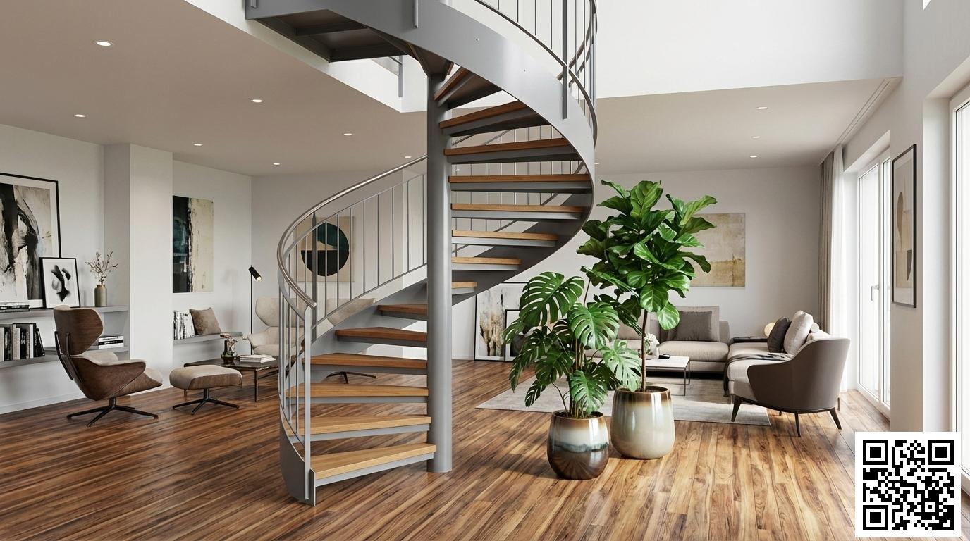 Helytakarékos megoldás: A csigalépcső kompakt kialakítása lehetővé teszi a tér maximális kihasználását, anélkül, hogy feláldozná a kényelmet vagy a biztonságot.